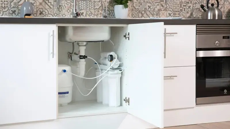 Ósmosis inversa doméstica: Estos sistemas son compactos y se instalan debajo del fregadero de la cocina. Utilizan una membrana semipermeable para eliminar contaminantes como sólidos disueltos, metales pesados y microorganismos del agua, produciendo agua potable de alta calidad directamente del grifo.